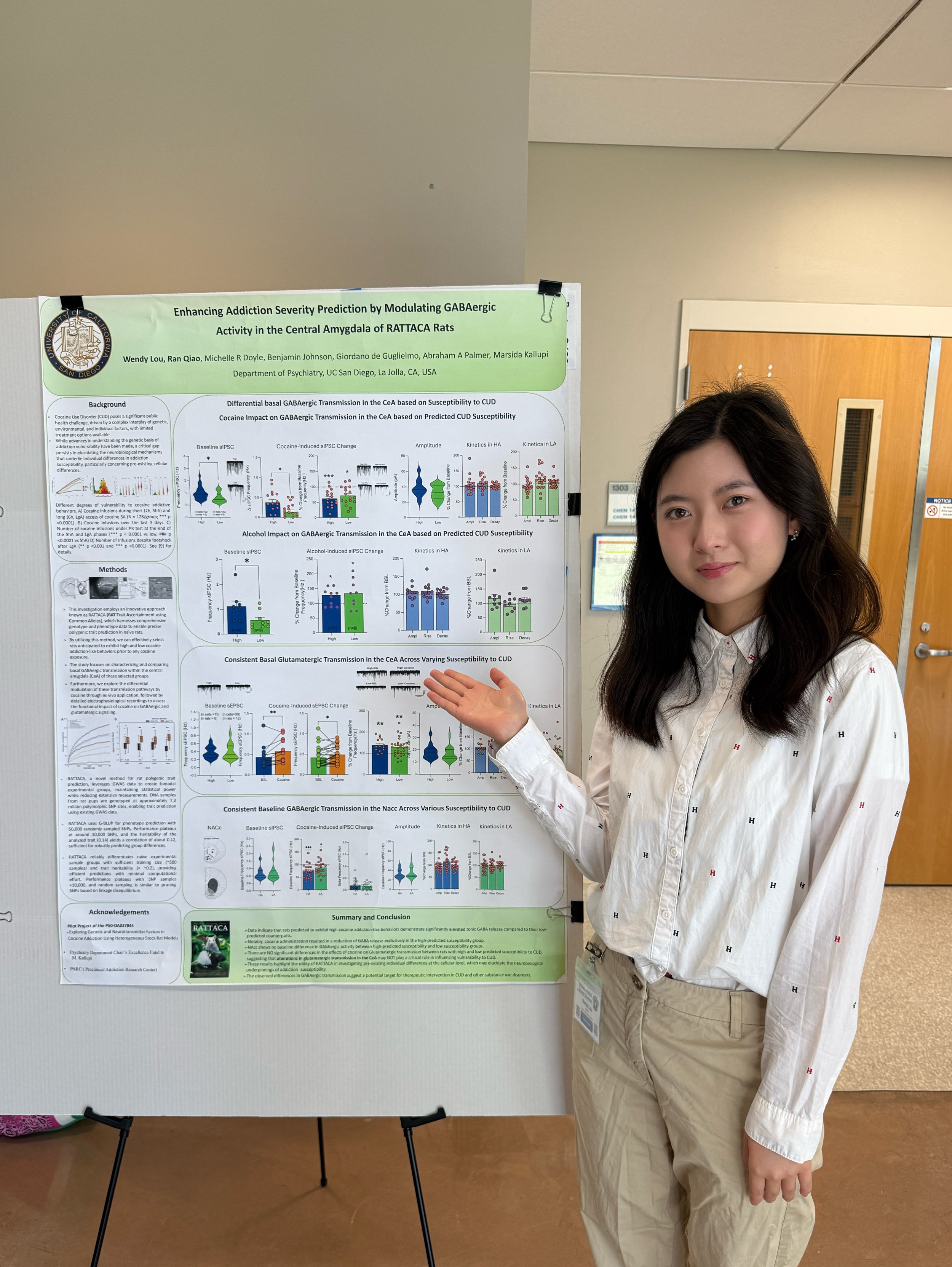 Wendy’s poster, titled “Enhancing Addiction Severity Prediction by Modulating GABAergic Activity in the Central Amygdala of RATTACA Rats,” highlights innovative work examining neural mechanisms underlying addiction severity. Her presentation contributed to the event’s mission of showcasing diverse scientific research and supporting the next generation of scientists.
